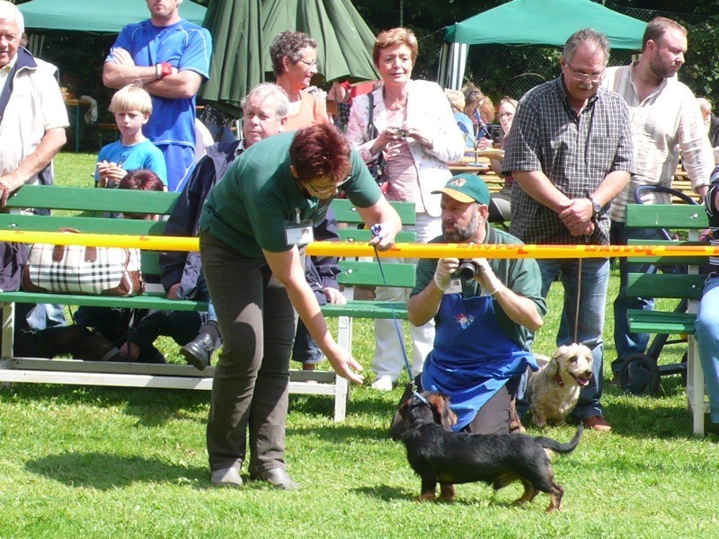 Für mich als Züchterin war schön zu sehen, wie die Hunde sich entwickelt haben und wiedermal alle ein ausgesprochen freundliches und liebes Wesen zeigten. Bei den von allen Besuchern mit Ungeduld erwarteten Dackelrennen war die ASTRA von Wilhelm Höll knapp mit mini Sekunden unterschied super erfolgreiche zweite in diesem doch stark besetztem Feld, was Ihr noch ein Bild in der SZ einbrachte.