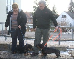 Besonders muss ich aber Elke Michely mit ENZO erwähnen, zumal Elke „Erstlingsführerin" ist und ENZO mit erst knapp 8 Monaten die Begleithundeprüfung I und II ganz souverän bestanden „was in dem Alter eine super Leistung ist“.